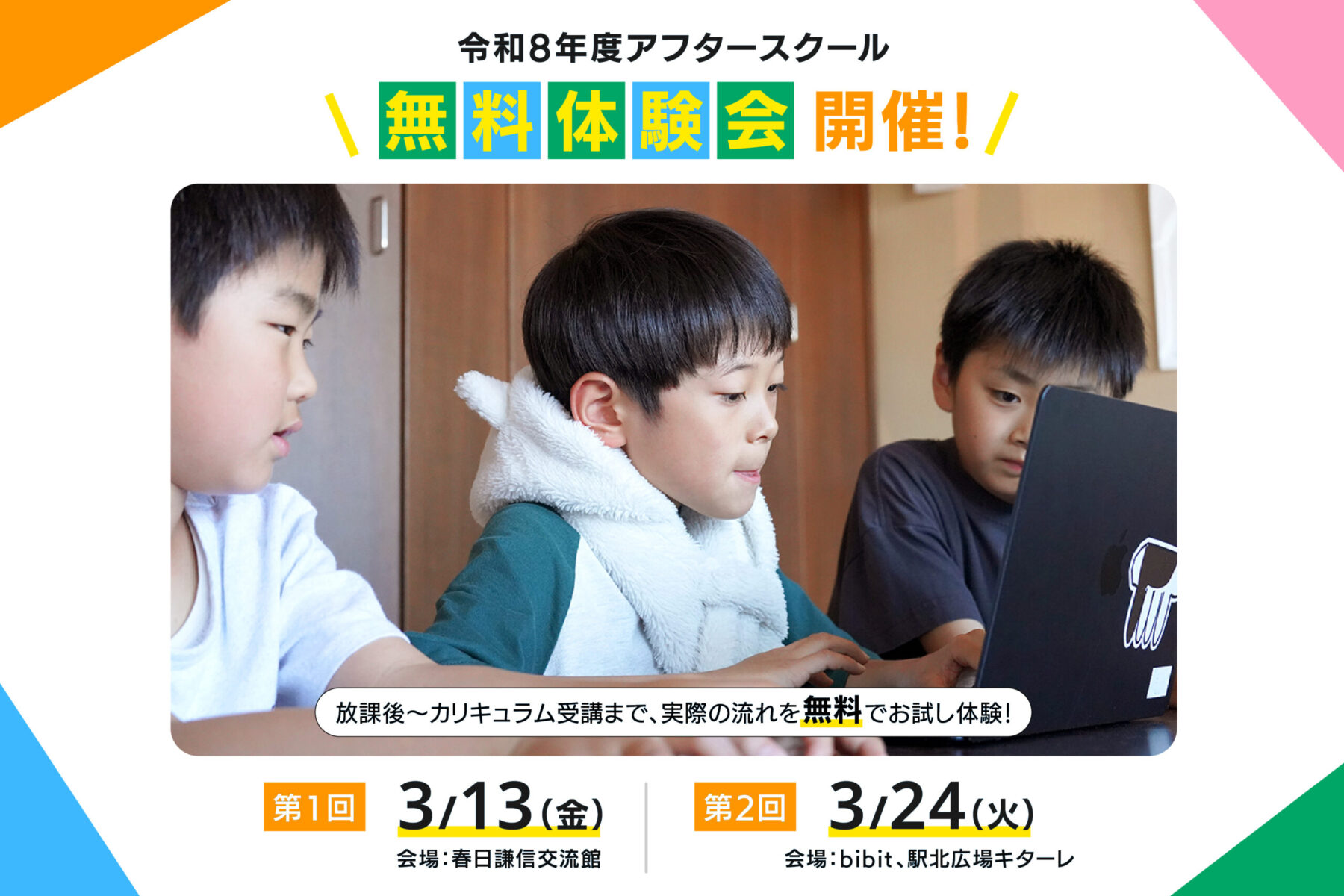 平日の放課後に開催しているクリエイティブスクールです。