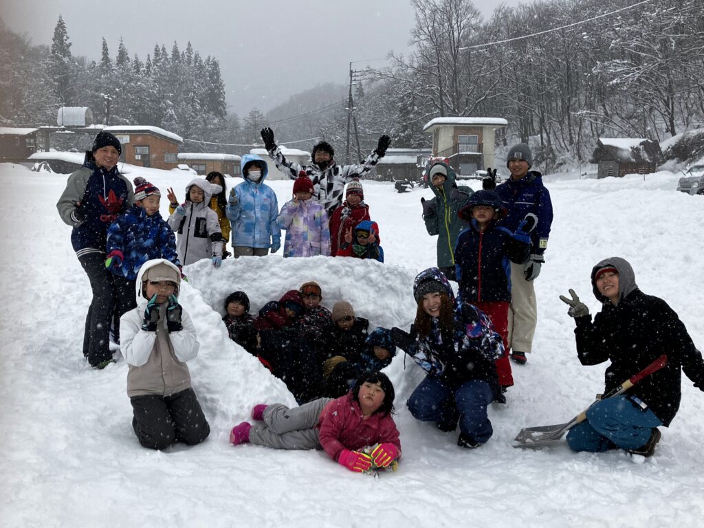 元々は1日目に作った凧を飛ばす予定でしたが、雪が降っていたため断念。それでも、坂を登ってソリやスノーチューブで遊んだり、かまくらを作ったりと目一杯雪遊びを楽しんでいました!